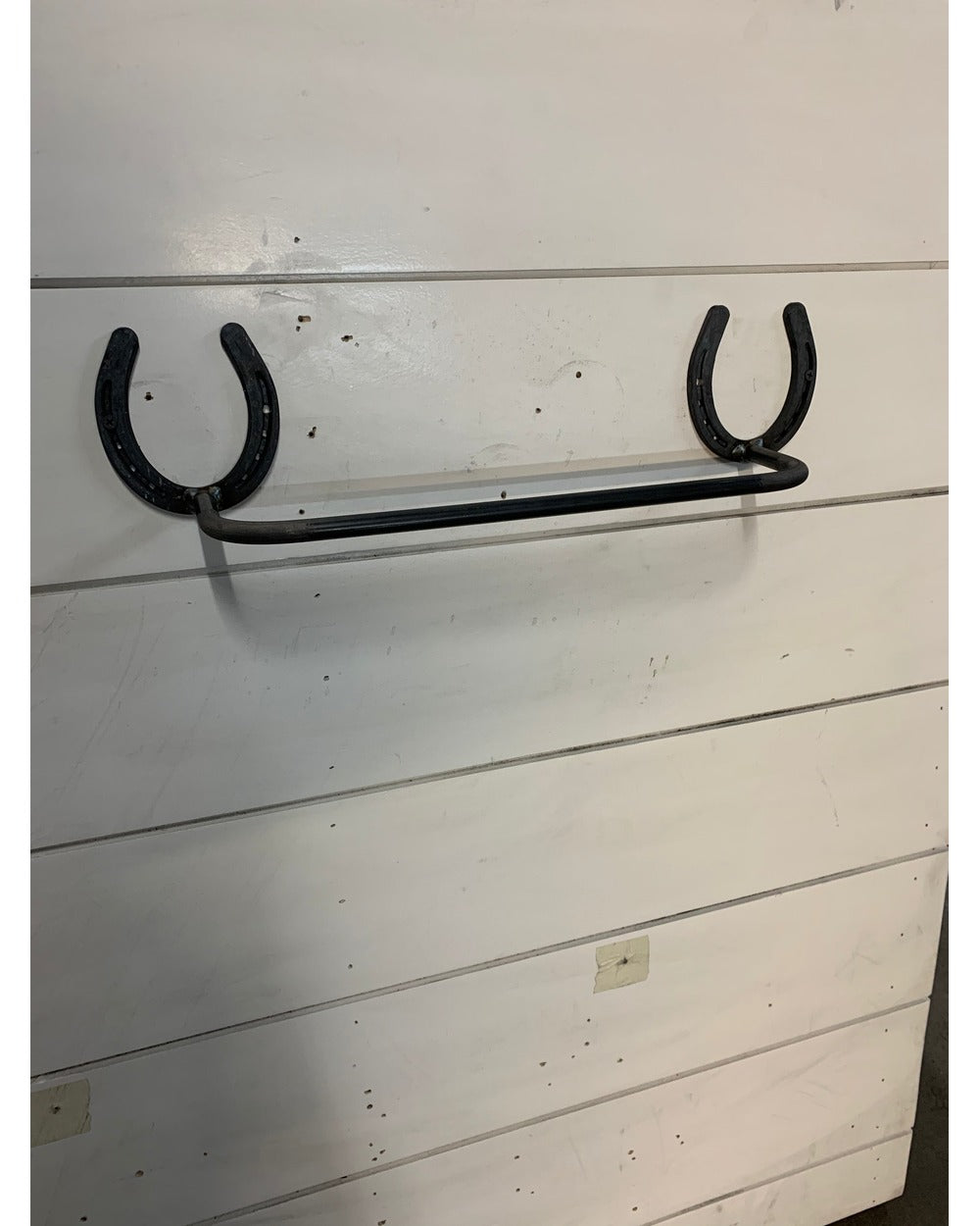 The Donahue — a horseshoe-mounted blanket and towel bar for your barn, bathroom, or western-styled space. Authentic horseshoe end caps with a solid steel round bar create the perfect blend of equestrian charm and everyday function. Handmade in Central NY by a family shop with 53,000+ sales and 8,000+ five-star reviews.