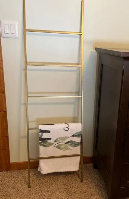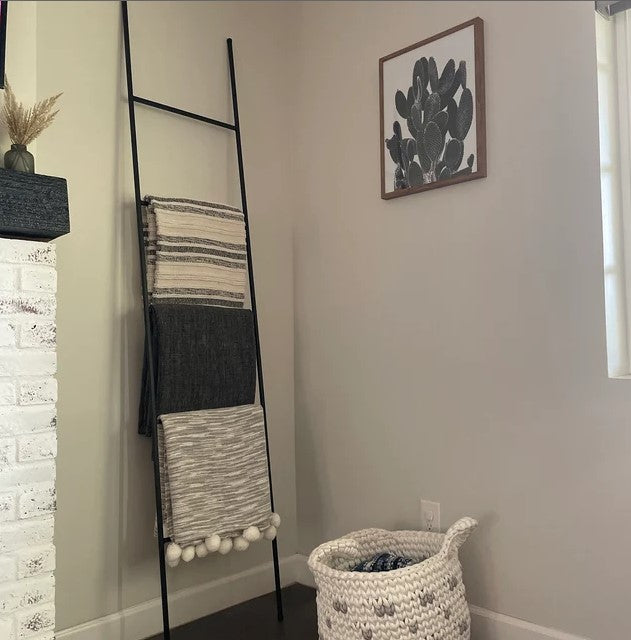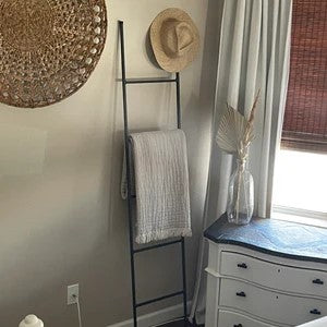 The Industrial Farm Co Lynn Ladder is the perfect ladder for your decorative needs! Add a bit of coziness to your space by adding some decorative blankets to the space. This piece is perfect for holding blankets, magazines, scarves, quilts, towels or can be used in your garden for climbing plants.