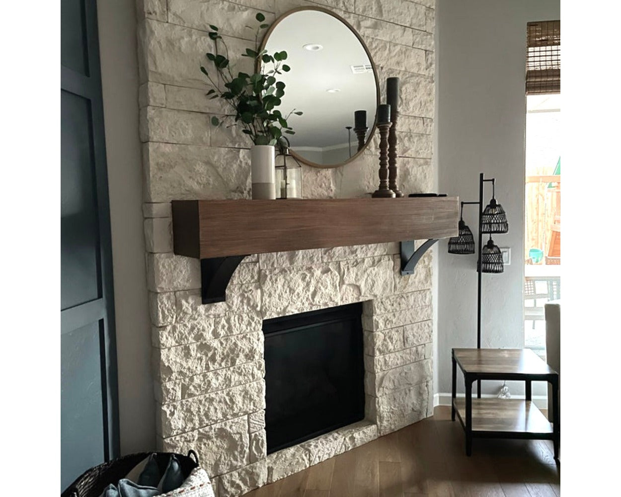 The Ninemile — our 5" wide industrial shelf bracket with a 4" curved support bar. Our widest industrial profile for maximum presence and strength. Built for heavy mantels, floating shelves, countertops, bench seats, and open kitchen shelving. Handmade in Central NY by a family shop with 53,000+ sales and 8,000+ five-star reviews.